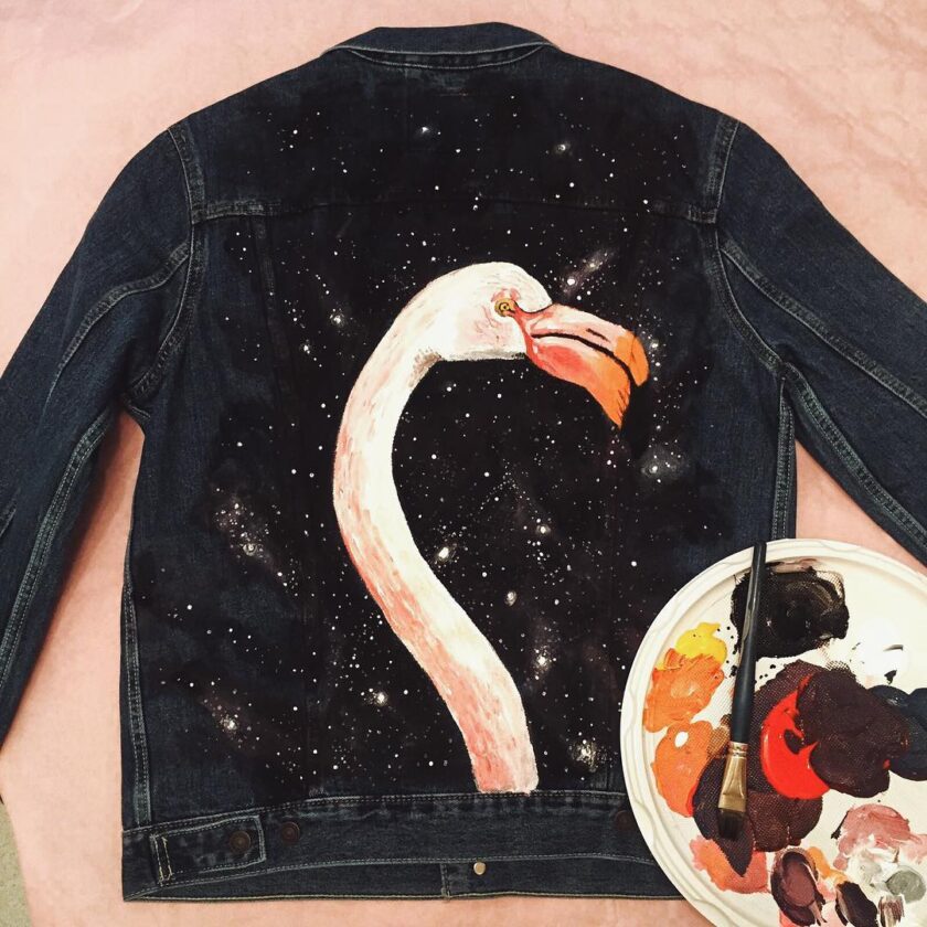 Volevo trovare un modo per far sì che i miei lavori fossero sotto gli occhi di un pubblico più ampio e magari più interessato, quindi mi son dato da fare. Fu la svolta quando – proprio nel 2016 -dipinsi un fenicottero rosa sul retro di una giacca di jeans di Levi’s.