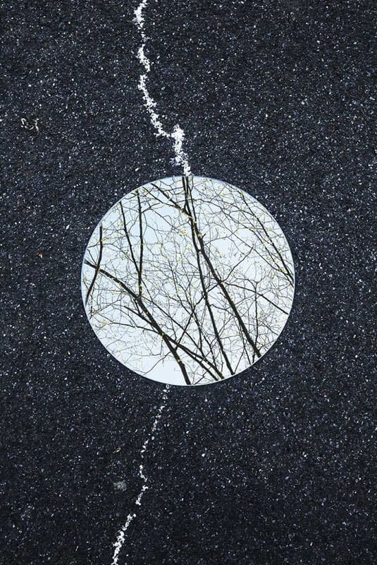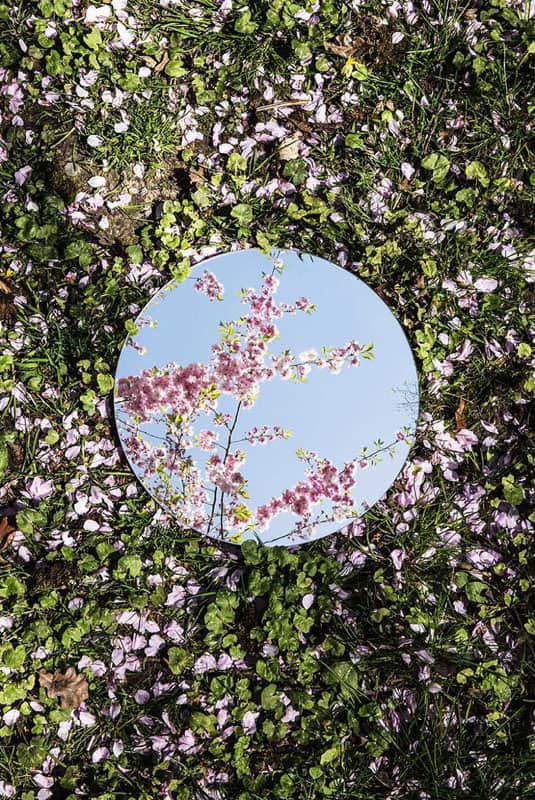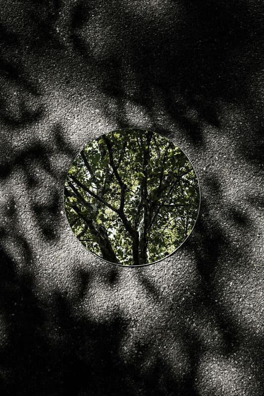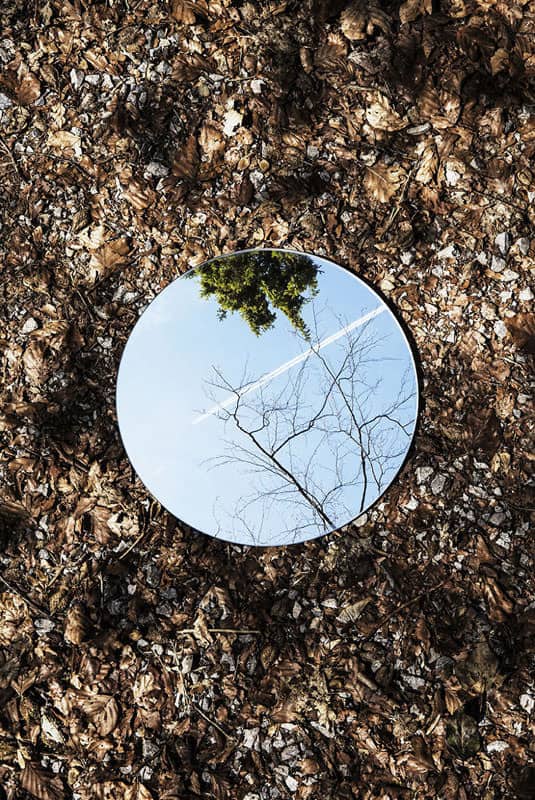 Il fotografo svizzero Sebastian Magnani, nelle serie in corso d’opera Reflections, attraverso l’utilizzo di specchi circolari posati sul suolo in ambienti esterni, immortala contemporanemante due differenti paesaggi.