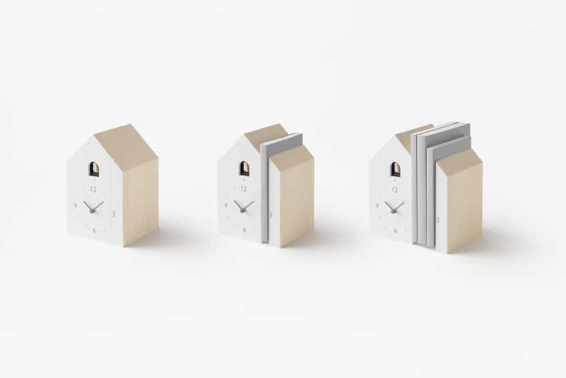 La collezione Cuckoo è progettata e costruita su estrusioni e scavi di legno, divisa in tre modelli: capovolto da appoggio, ferma libri e scavato con cucù laterale, il tutto distinto da un design minimal ed essenziale proprio della famosa casa giapponese.