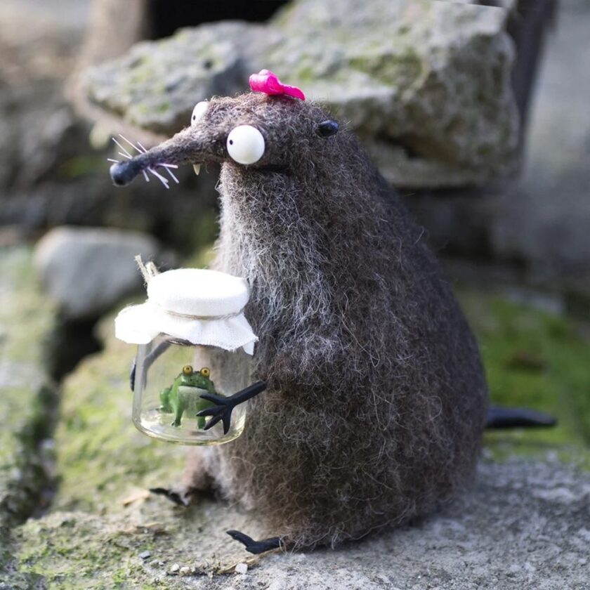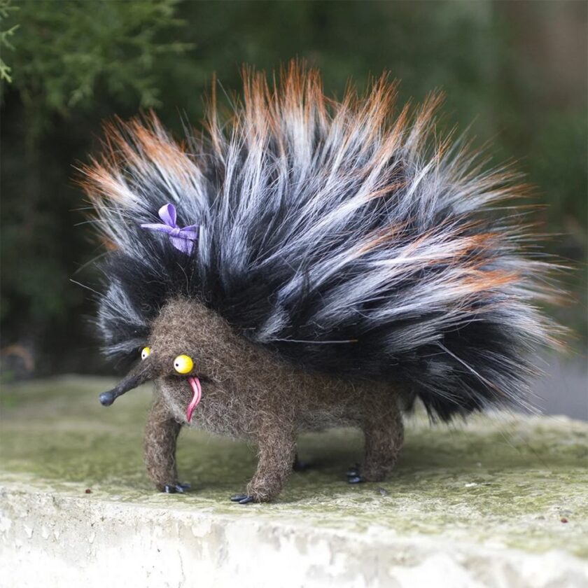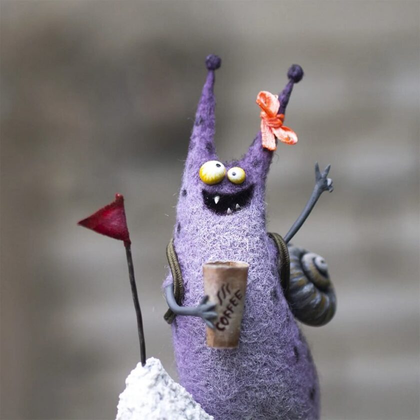 Con fili di lana, argilla polimerica e materiali riciclati, l’artista dà vita a simpatiche creature dalle bizzarre sembianze che sembrano uscite da una fiaba surreale.