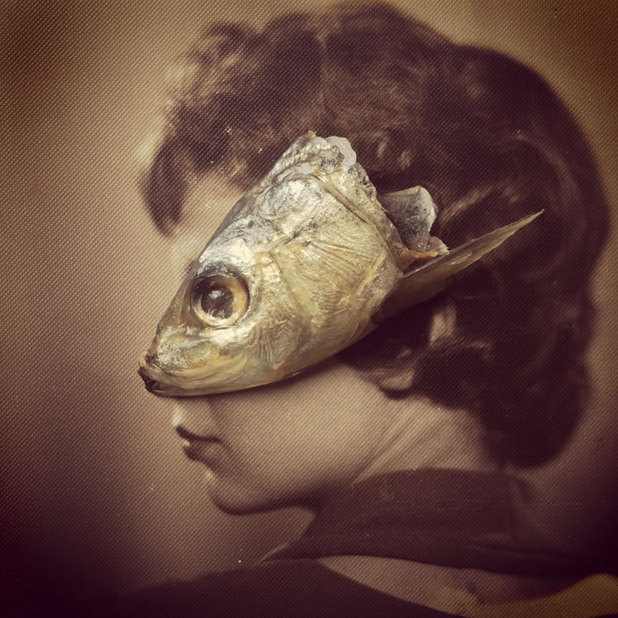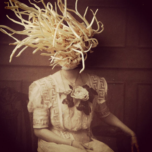 Susana realizza collages tridimensionali di vecchie fotografie di ritratto, scovate nei mercatini delle pulci, che rinverdisce e rielabora con la sua fantasia, giustapponendovi oggetti d’uso quotidiano e alimenti, con esiti inaspettati.