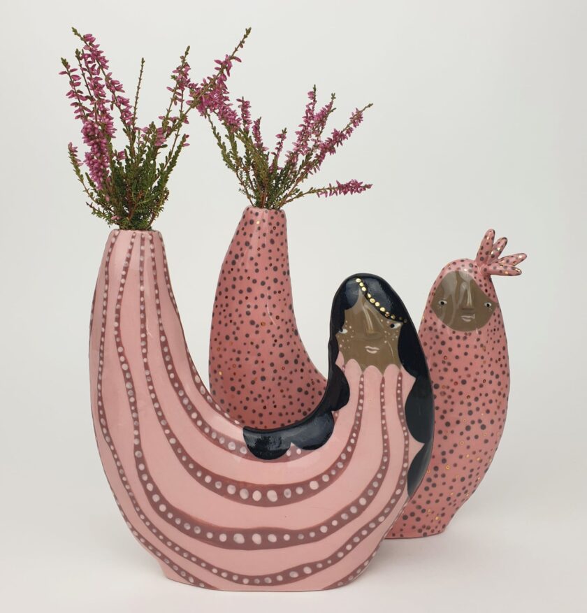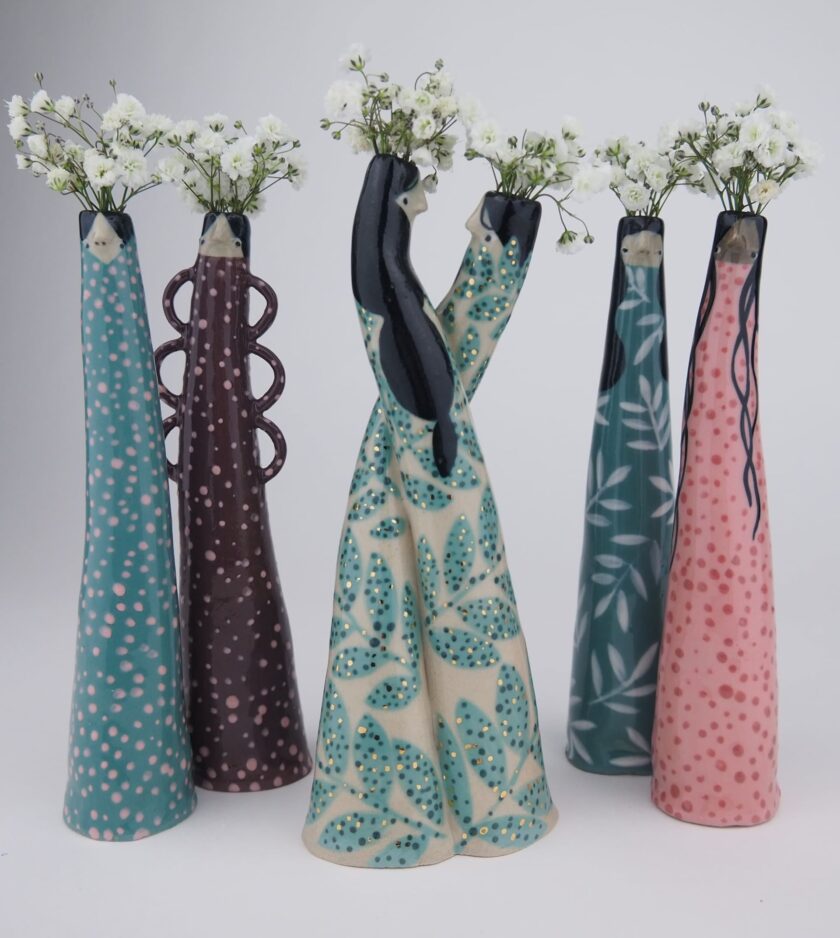 Amo i colori e le fantasie. Ho un debole per le tonalità pastello, mi piace scolpire occhi piccoli, dipingere strane lentiggini e mi sfido a provare sempre nuove cose divertenti. Dal vaso più grande al più piccolo piatto, metto amore, pensiero e impegno in ogni singolo pezzo che creo. Scaricare la mia ceramica dal forno mi dà la sensazione migliore di sempre. Spero che i miei lavori facciano ridere e sognare ad occhi aperti. Spero che distraggano dalle attività quotidiane, lascino sentimenti calorosi e stuzzichino l’immaginazione.