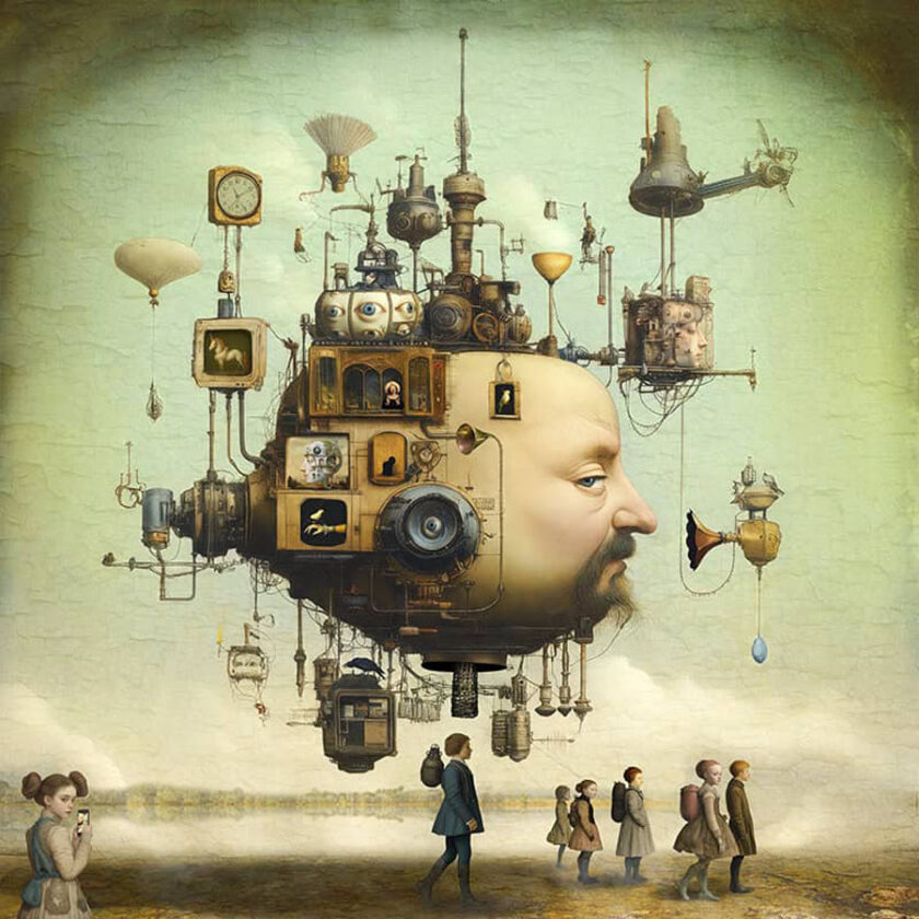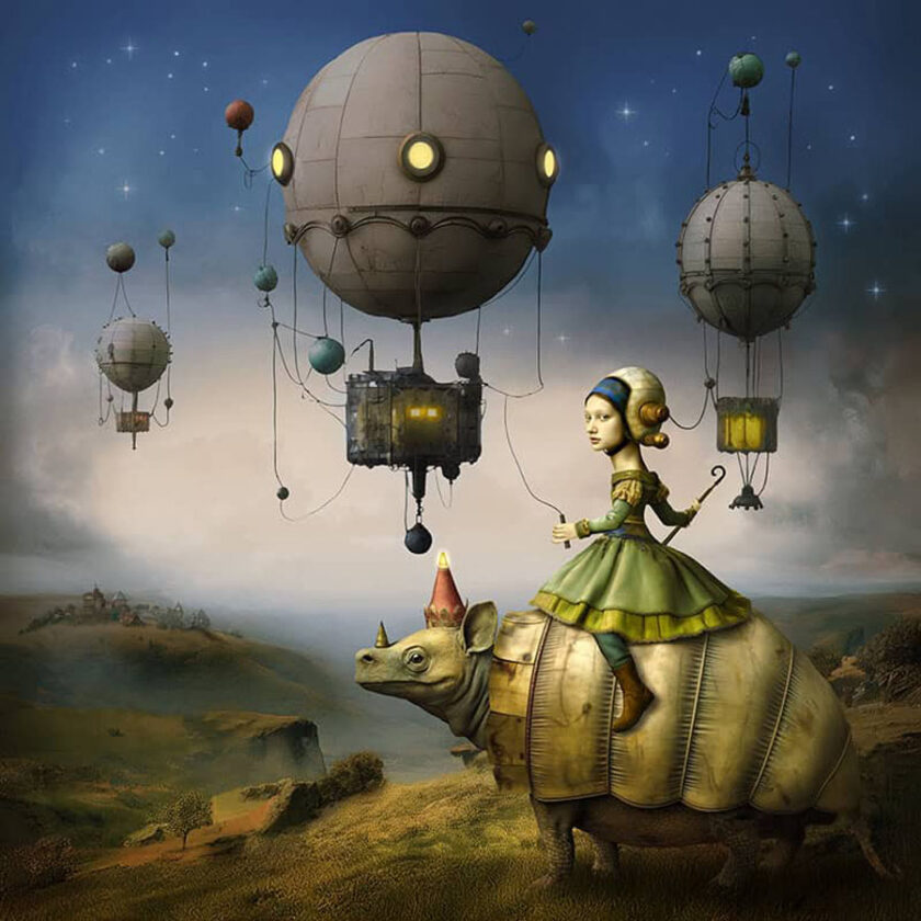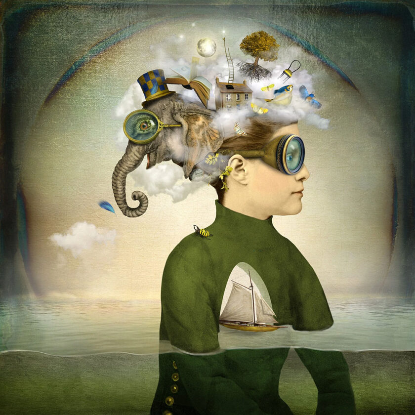 Fotografa e artista digitale statunitense, Maggie Taylor combina fotografie d’epoca, oggetti scansionati e tecniche di manipolazione digitale per creare collage fotografici dal fascino fiabesco.