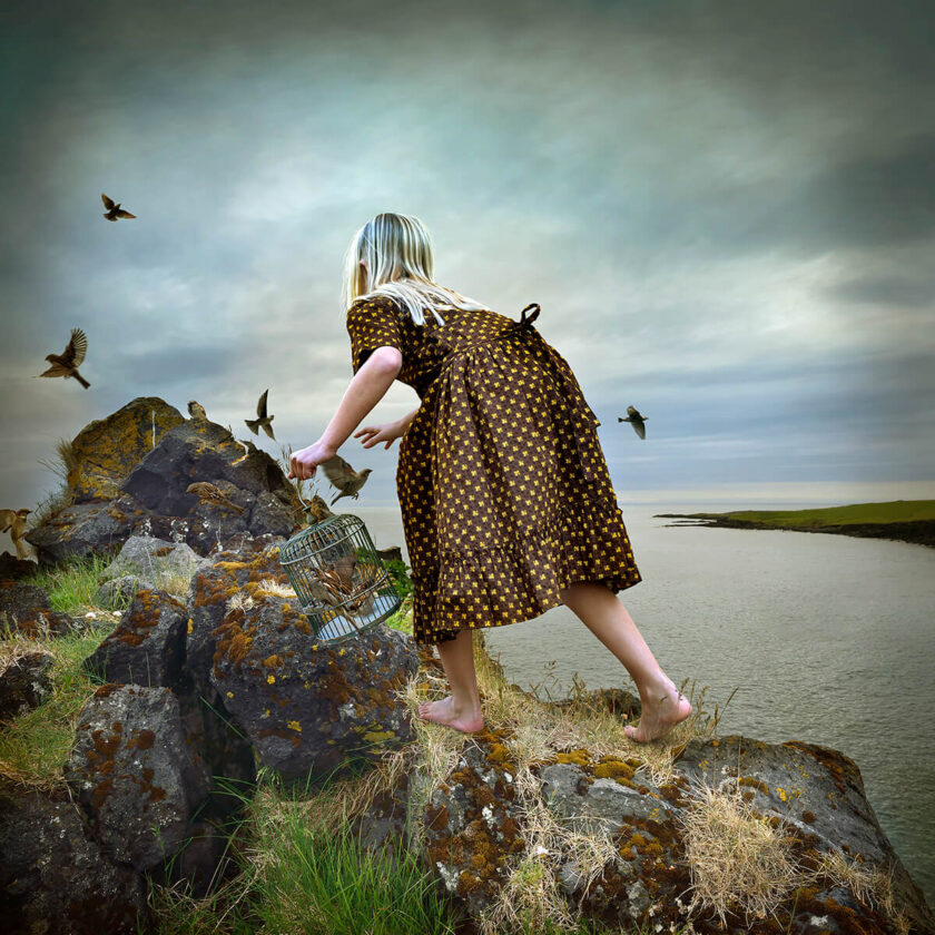 Through photomontage I present unspoken stories which illustrate fleeting moments in time and which are intended to evoke a mood in the viewer. These mythical illustrations might address the fragility of childhood or the delicate transition experienced by a child passing into adolescence and then adulthood. Others express the tension in the uncertain coexistence between man and his environment, a delicate balance too often ignored and damaged.