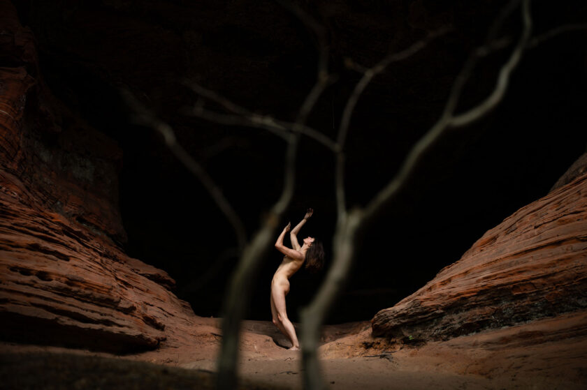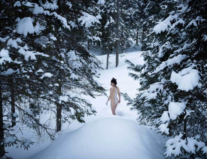 I loro scatti nascono dall’incontro tra il corpo umano, nudo, fragile, spesso in posa quasi rituale, e paesaggi naturali potenti come montagne, foreste, deserti dove il corpo diventa strumento e simbolo di umiltà, una presenza delicata inserita nel respiro del pianeta.