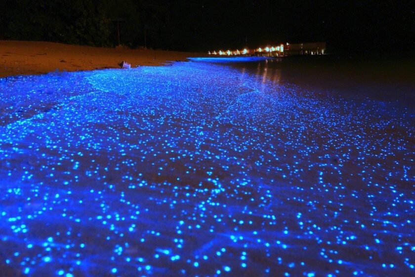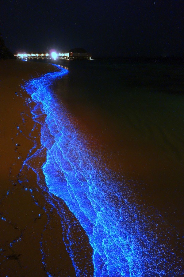 Il fenomeno, catturato dal fotografo taiwanese Will Ho nel 2013, può essere osservato sull’isola di Vaadhoo, nell’atollo Huvadhu a nord dell’arcipelago delle Maldive, anche se in linea teorica può essere osservato in tutti gli oceani del mondo a patto che la concentrazione di microorganismi sia estremamente elevata.