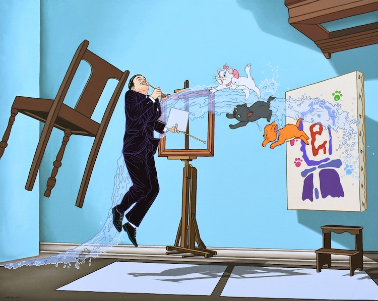 L’artista prende personaggi iconici dei cartoni animati e li inserisce in contesti inaspettati e spesso provocatori, sfidando le norme e mettendo in discussione le idealizzazioni che circondano queste figure.