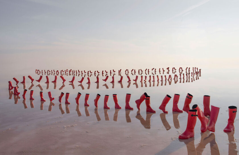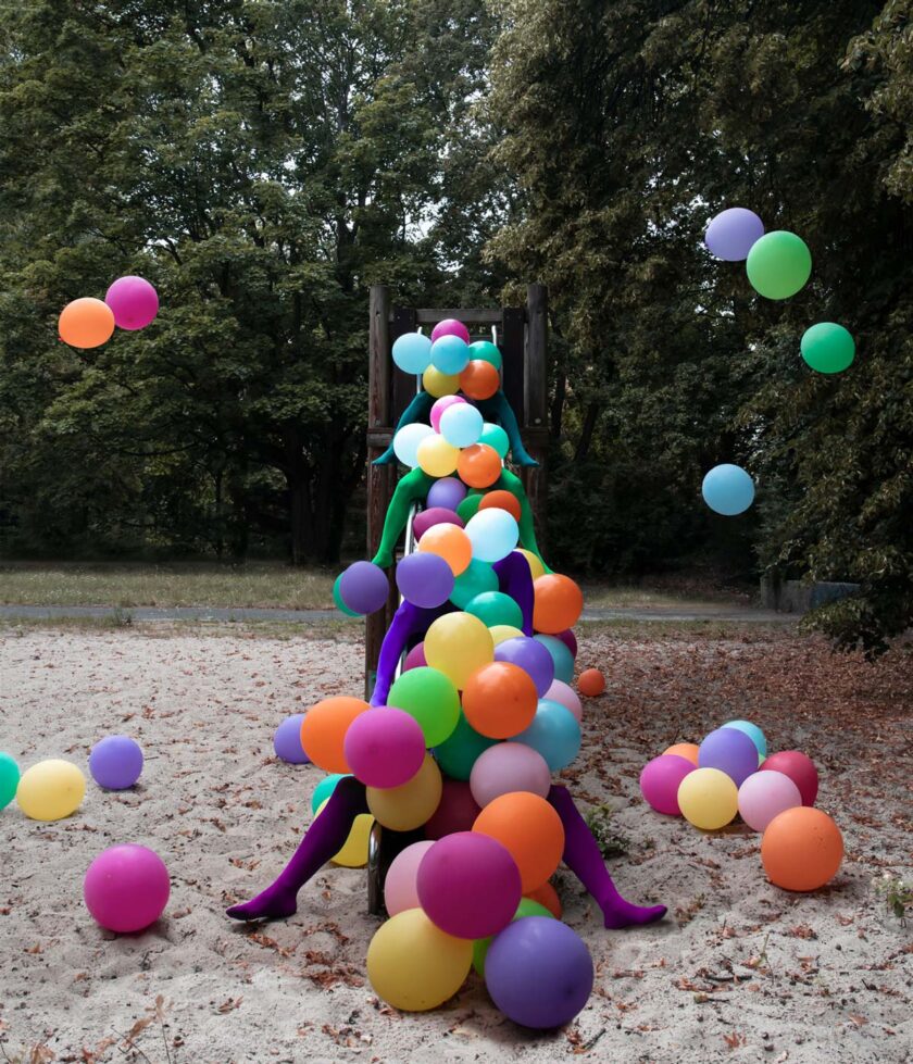 I ritratti e autoritratti della Parlar, giocosi e delicati, squisitamente femminili, tutto un susseguirsi di coloratissimi oggetti sospesi a mezz’aria o a pelo dell’acqua – palloncini, stivali di gomma, camicie, cappelli – e stravaganti personaggi, appaiono come visioni oniriche entro scenari naturali di incredibile bellezza, e rappresentano per l’artista la sua personale e profonda meditazione sull’esistenza e sull’effimerità della vita.