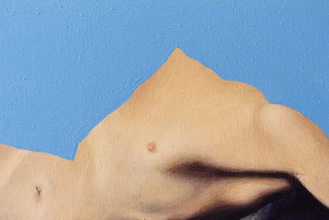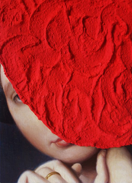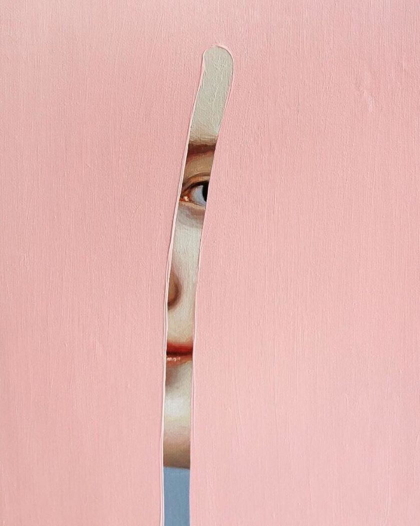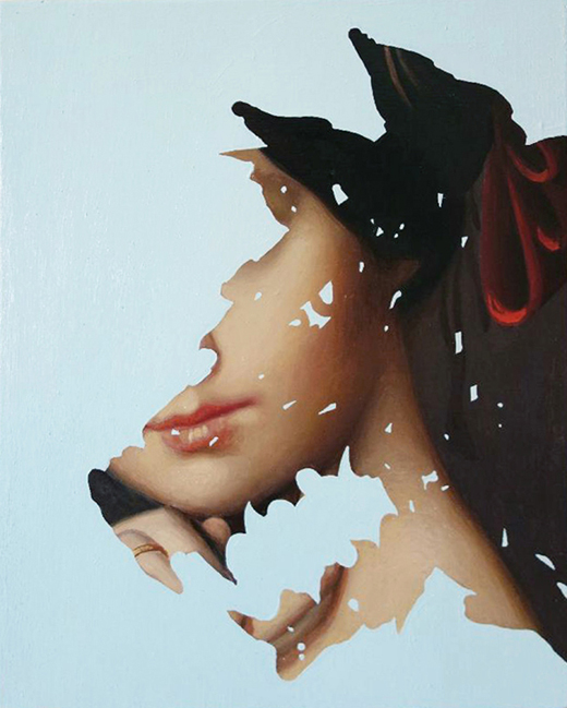 In chiave di un raffinato e ironico voyeurismo, il ritratto è parzialmente visibile solo attraverso una sottile “fessura” sulla tela, che ci consente di spiarne i protagonisti, di solito personaggi tratti dalla mitologia classica o dalla storia antica.