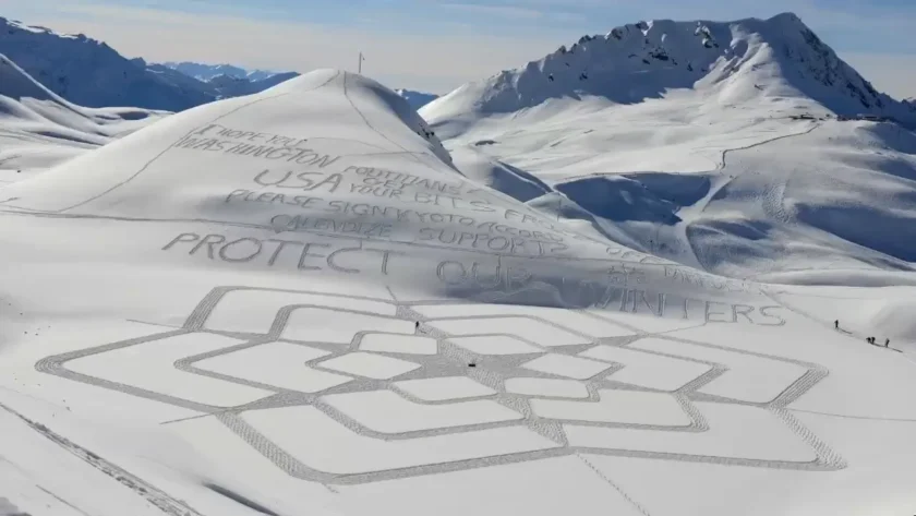 Il risultato? Mandala perfettamente simmetrici estesi su aree vaste come 2-8 campi da calcio, visibili solo dall’alto che mostrano un’arte effimera, destinata a scomparire con la prossima nevicata, ma al tempo stesso uno sguardo straordinario sulla fusione tra precisione matematica e poesia naturale.