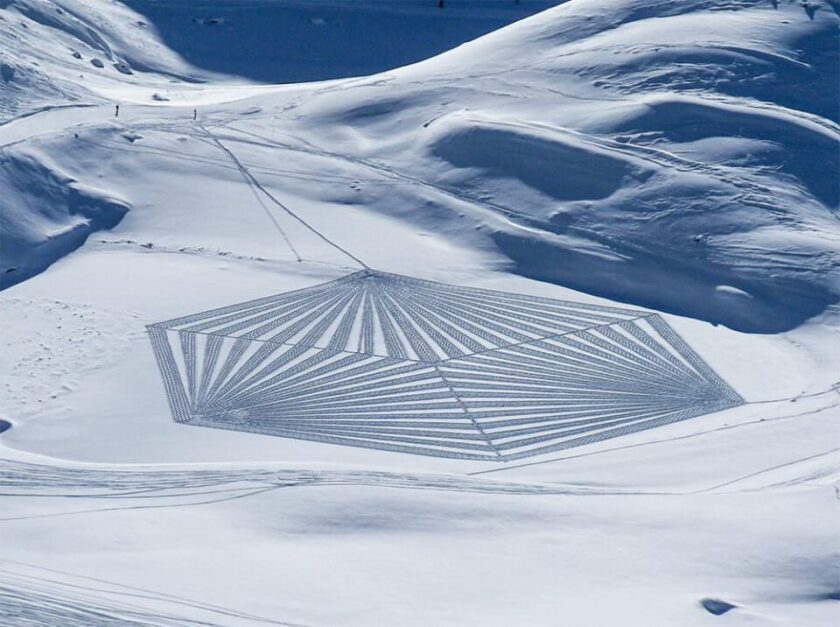 L’artista Simon Beck trasforma la neve in tela con la delicatezza di un geometra e la forza delle sue gambe.
