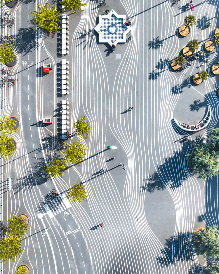 Scattate in giro per il mondo, tra Hong Kong, Tokio, Londra, Madrid e Barcellona, le fotografie di Cheng sono caratterizzate da linee pulite e forme perfettamente simmetriche, enfatizzate dal punto di vista dall’alto e dai colori vivaci che danno luogo a composizioni geometriche sbalorditive.