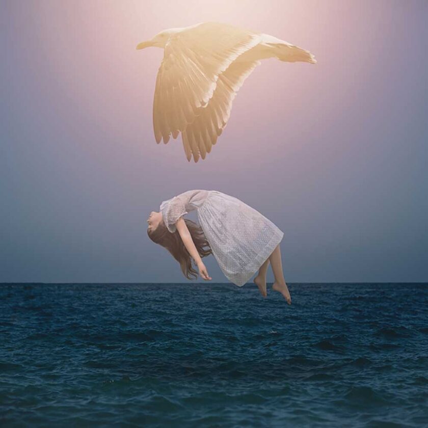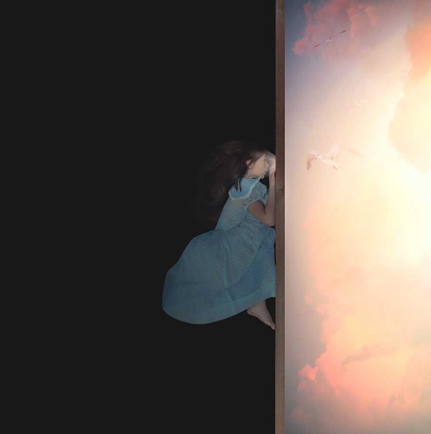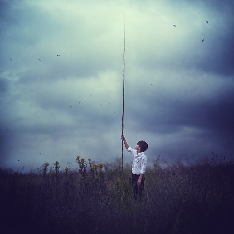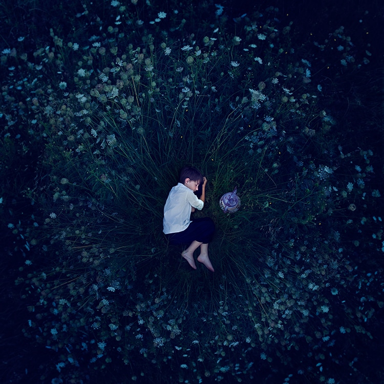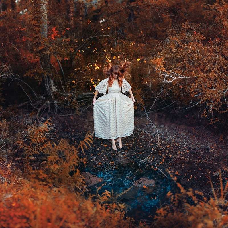 Ispirate al fenomeno del sogno lucido, ovvero la condizione in cui si è consapevoli di sognare mentre si sogna, esperienza che l’artista ha vissuto per anni, le fotografie di Maroney si configurano come trasposizioni visive di sogni, stati interiori e paesaggi mentali, frutto di una costruzione scenica meticolosa e di una post-produzione attenta e raffinata.