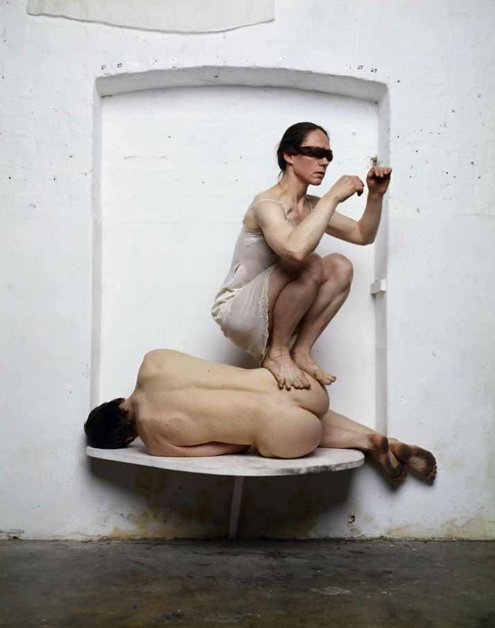 Le opere di Vason non sono semplici fotografie di scena, appaiono come testimonianza di una fertile contaminazione, di un intenso scambio creativo tra soggetto e oggetto, artista e artista, opera e spettatore; l’atto di fotografare non viene inteso come mera e passiva registrazione del momento performativo ma, esso stesso, è parte attiva della performance, che sarà fruibile dal pubblico solo una volta impressa nell’immagine.