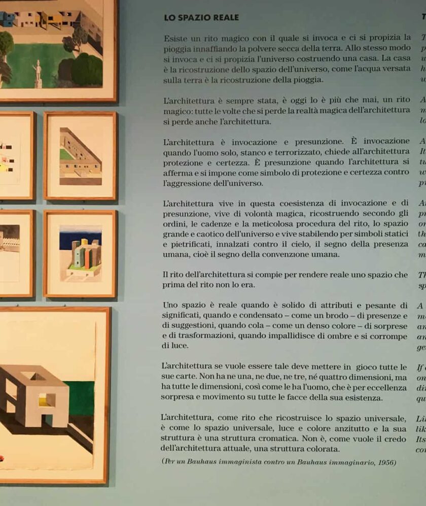 Un percorso espositivo che si compie lungo dei corridoi attraverso cui si accede a nove stanze differenti, ognuna riguardante un tema: a partire da Per qualcuno può essere lo spazio (fino al 1955 circa), passando per Il disegno magico (anni ’50 e ‘60), Memorie di panna montata (anni ‘60), fino ad arrivare a Vorrei sapere perché… (fino al 2007).
