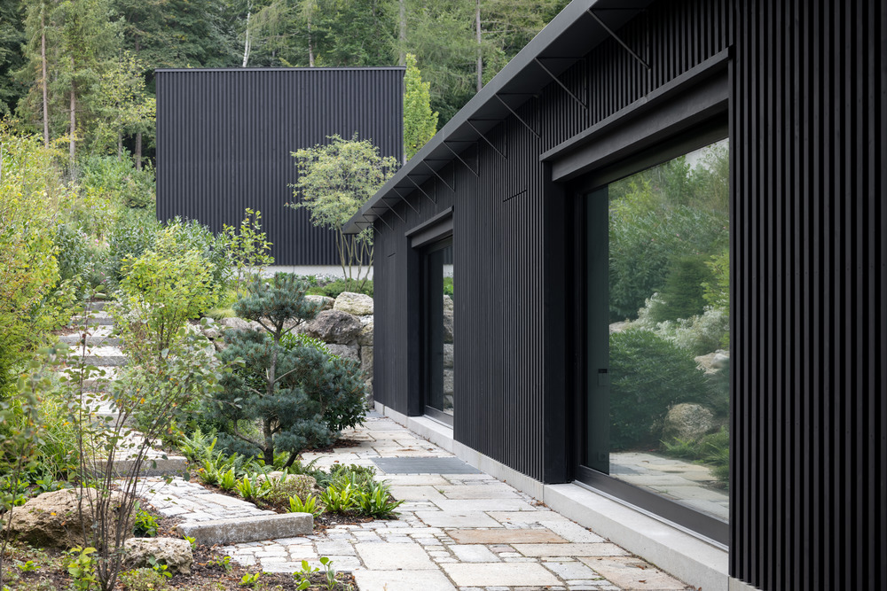 La casa, situata nella natura bavarese in Germania, è progettata per integrarsi con il suo ambiente naturale e permette ai residenti di ritirarsi o partecipare alla vita comune in qualsiasi momento. La forma del tetto a ventaglio conferisce alla casa una varietà interna, mentre la facciata è caratterizzata da doghe in legno che coprono i cubi e finestre traslucide che possono essere aperte per una visuale senza ostacoli.
